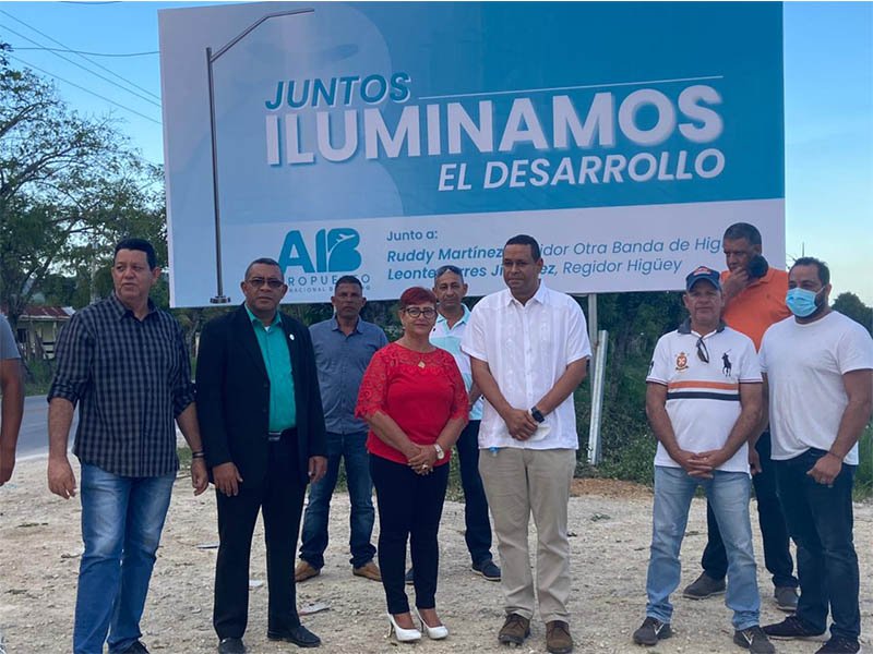 La Otra Banda, Higüey.- Un total de 38 lámparas, alambrados, dos transformadores y todo el material necesario para la instalación, fueron entregados con el objetivo de iluminar un tramo de esta ciudad sumamente transitado, especialmente por el sector hotelero y turístico, en continuación con el trabajo social y de desarrollo que realiza el Aeropuerto Internacional de Bávaro (AIB) en la zona Este del país.